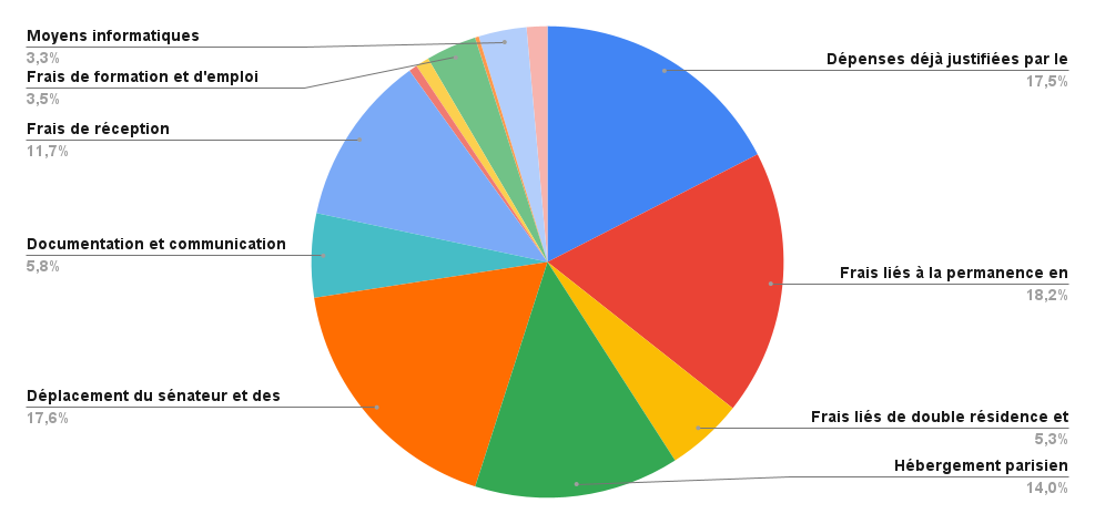 18 000,00 € de frais d’hébergement parisiens. Les montants non dépensés (soit 2 611,11 €) seront restitués au Sénat.